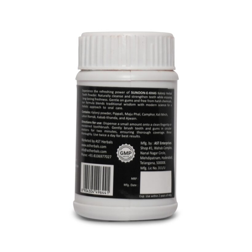 Experience the refreshing power of Kalonji Herbal Tooth Powder. Naturally cleanse and strengthen teeth while enjoying long-lasting freshness. Gentle on gums and free from harsh chemicals, our formula blends traditional wisdom with modern science for a holistic approach to oral care.