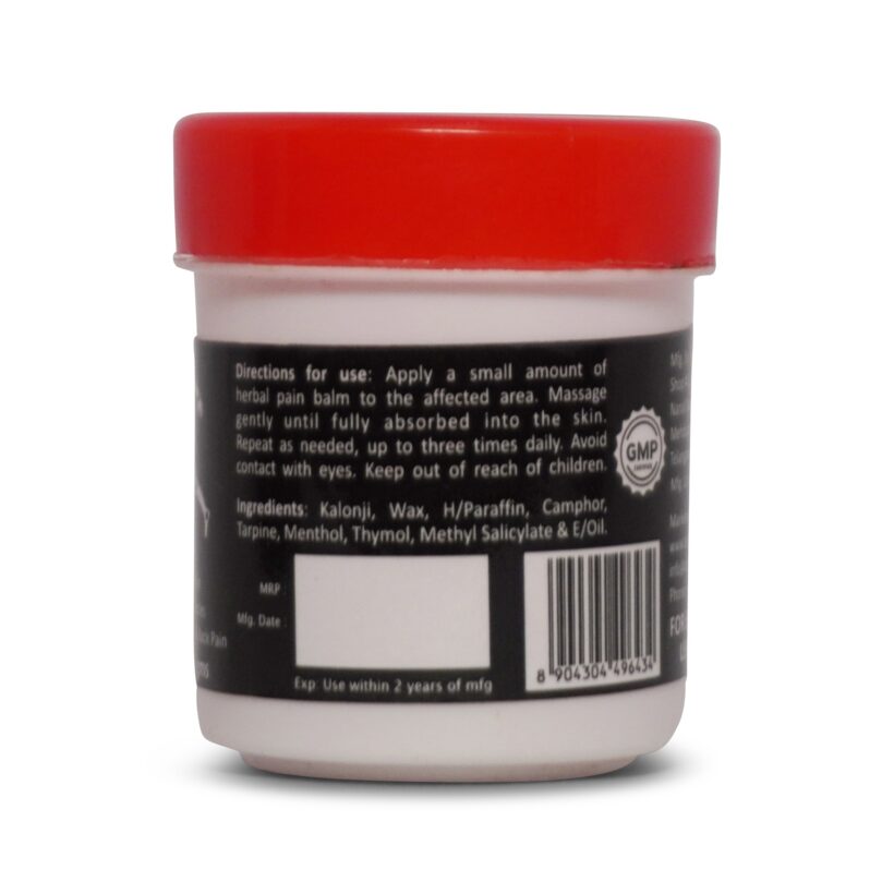 Harnessing the therapeutic properties of black seed oil and other essential ingredients, known for their anti-inflammatory and analgesic effects, our herbal formula penetrates deep into the skin to provide fast-acting relief. Whether you’re experiencing the stiffness of arthritis or the strain of an active lifestyle, our pain balm offers a gentle yet effective solution.